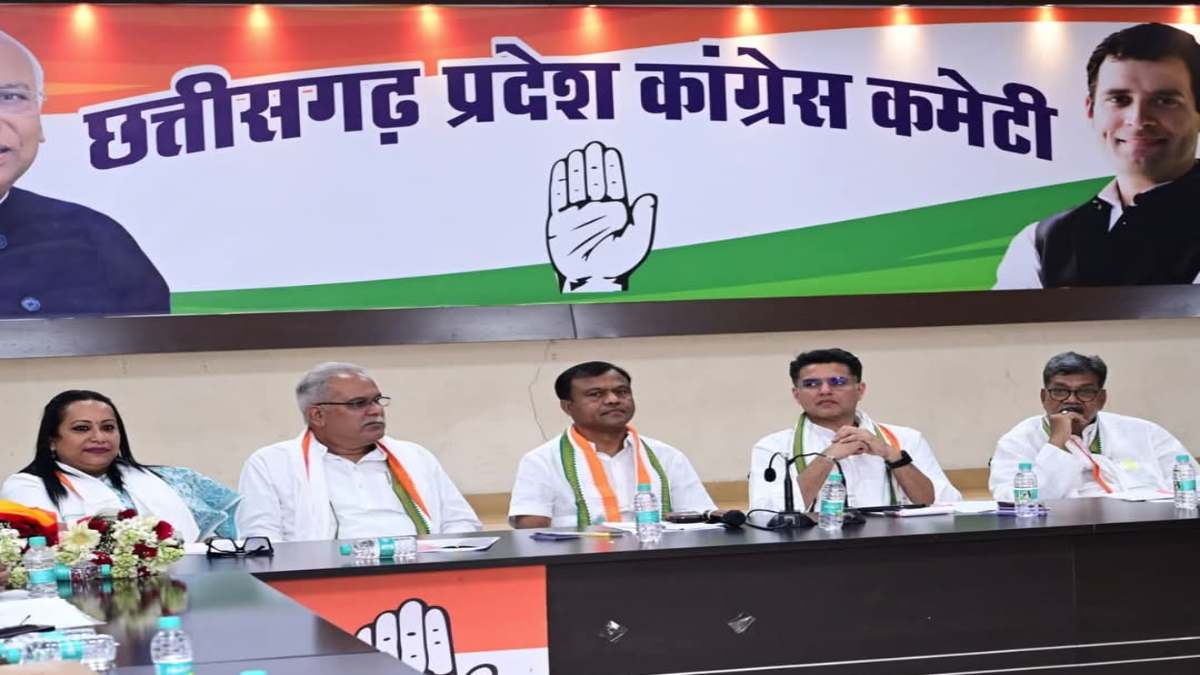 प्रदेश कांग्रेस प्रभारी सचिन पायलट की अध्यक्षता में हुई इस बैठक में कमेटी के सदस्य कांग्रेस अध्यक्ष दीपक बैज, नेता प्रतिपक्ष डॉ. चरणदास महंत एवं प्रभारी सचिव एस.ए. संपत कुमार, जरिता लेतफलांग, विजय जांगिड़, पूर्व मंत्री धनेन्द्र साहू, पूर्व मंत्री सत्यनारायण शर्मा, पूर्व मंत्री ताम्रध्वज साहू, एआईसीसी सचिव राजेश तिवारी, एआईसीसी सचिव एवं विधायक देवेन्द्र यादव, प्रभारी महामंत्री मलकीत सिंह गैदू, सांसद पूर्व मंत्री रविन्द्र चौबे, पूर्व मंत्री मोहम्मद अकबर, पूर्व मंत्री शिवकुमार डहरिया, पूर्व मंत्री अनिला भेड़िया, पूर्व मंत्री जयसिंह अग्रवाल, पूर्व मंत्री गुरू रूद्र कुमार, पूर्व मंत्री प्रेमसाय सिंह, अमरजीत भगत, उमेश पटेल, अमितेश शुक्ल, पूर्व सांसद छाया वर्मा, पूर्व विधायक गुरूमुख सिंह होरा, पूर्व विधायक अरूण वोरा, पूर्व विधायक विकास उपाध्याय, वरिष्ठ कांग्रेस नेता राजेन्द्र तिवारी, शैलेश नितिन त्रिवेदी, प्रदेश कांग्रेस संचार विभाग अध्यक्ष सुशील आनंद शुक्ला, युवा कांग्रेस अध्यक्ष आकाश शर्मा, एनएसयूआई प्रदेश अध्यक्ष नीरज पाण्डेय, कांग्रेस सेवादल प्रमुख अरूण ताम्रकार उपस्थित थे.