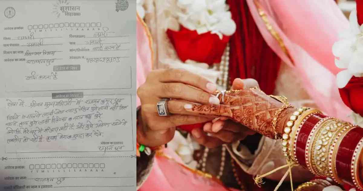 धमतरी। साय सरकार के सुशासन तिहार के तहत गांव-गांव, शहर-शहर लोगों की समस्याओं का समाधान करने आवेदन लेने का सिलसिला जारी है. आम जनता से 11 अप्रैल तक आवेदन लिए जाएंगे. सुशासन तिहार में धमतरी के युवक का आवेदन सोशल मीडिया पर तेजी से वायरल हो रहा है, जिसमें वह सीएम विष्णुदेव साय से शादी के लिए लड़की जुगाड़ करा देने की मांग की है.