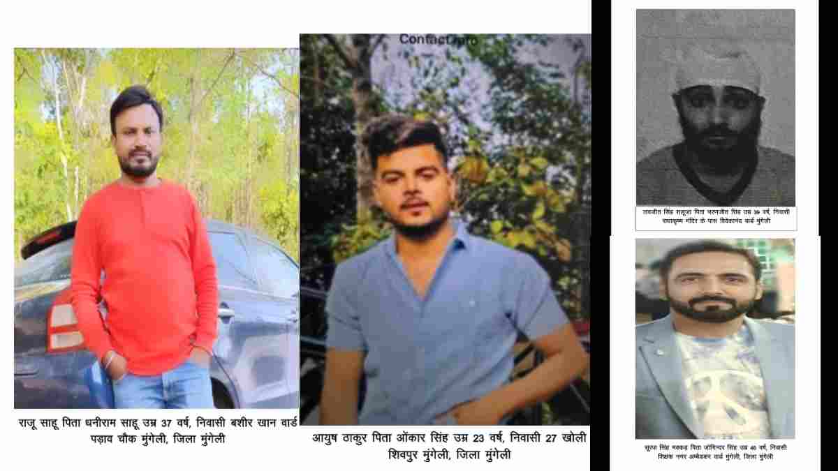मुंगेली निवासी आयुष प्रताप सिंह उर्फ समीर ठाकुर, आयुष ठाकुर, राजू साहू, सूरज मक्कड, प्रदीप सिंह ठाकुर एवं लवजीत सिंह ने डरा-धमकाकर छलपूर्वक प्रार्थी सिद्धार्थ वैद पिता स्व. अशोक कुमार बैद उम्र 21 वर्ष निवासी गोल बजार गांधी वार्ड मुंगेली एवं आवेदक की माता की जमीन की अपने साथी के नाम जबरन रजिस्ट्री कराई. चेक एवं बैंक ट्रांजेक्शन के माध्यम से डरा-धमकाकर कुल करीबन 60 लाख अवैध रूप से डरा-धमकाकर छलपूर्वक वसूल किया. प्रार्थी सिद्धार्थ बैद के लिखित आवेदन पर आरोपियों आयुष प्रताप सिंह उर्फ समीर ठाकुर, आयुष ठाकुर, राजू साहू, सूरज मक्कड, प्रदीप सिंह ठाकुर एवं लवजीत सिंह के विरूद्ध थाना सिटी कोतवाली मुंगेली में अपराध पंजीबद्ध कर अग्रिम कार्यवाही की जा रही है।