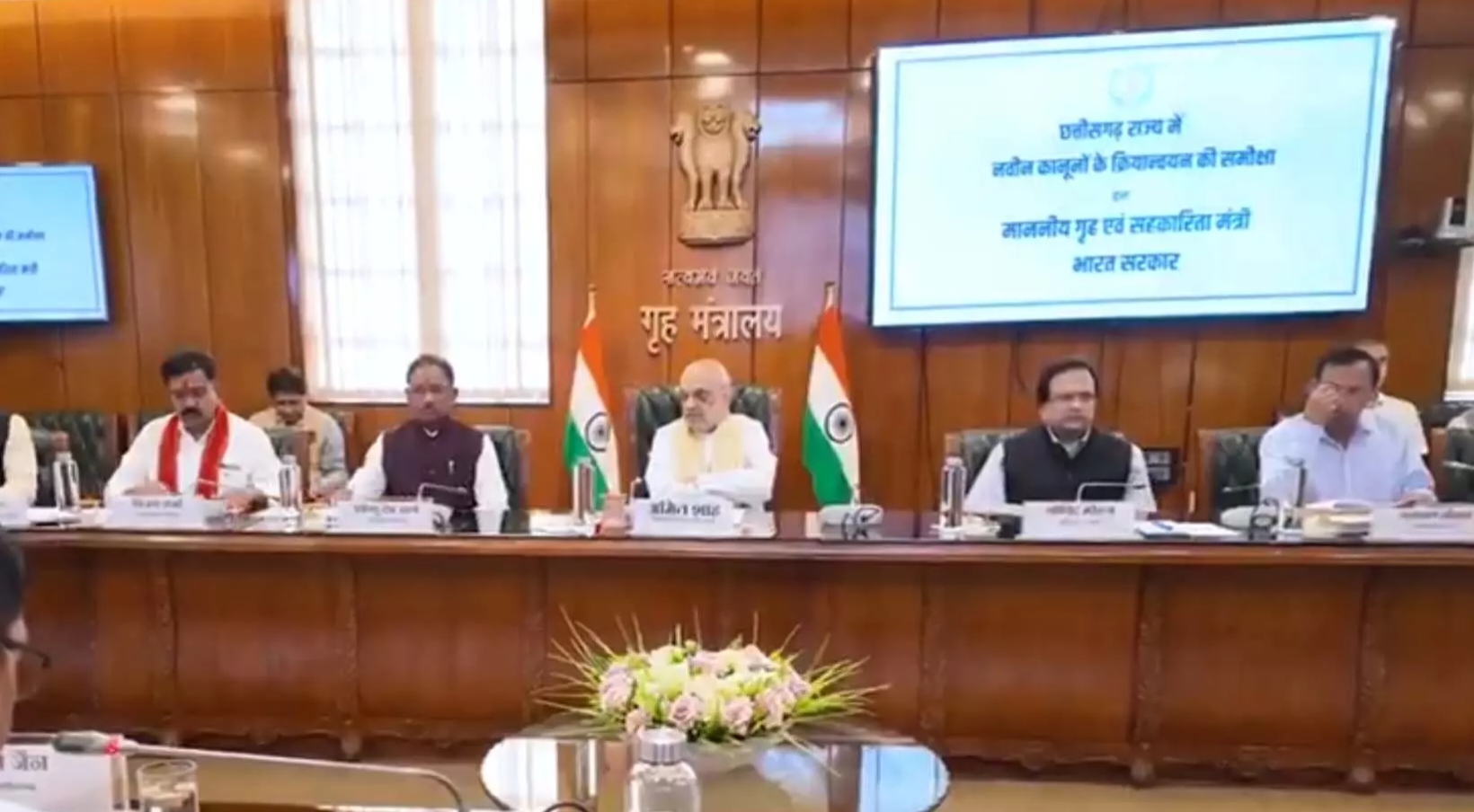 नई दिल्ली।    छत्तीसगढ़ के मुख्यमंत्री विष्णु देव साय ने आज नई दिल्ली स्थित नॉर्थ ब्लॉक में केंद्रीय गृह मंत्री अमित शाह से मुलाकात की। श्री शाह की अध्यक्षता आयोजित बैठक में राज्य में तीन नए आपराधिक कानूनों के कार्यान्वयन को लेकर समीक्षा की गई। इसके साथ ही नक्सलवाद के उन्मूलन, बस्तर के समग्र विकास और राज्य में सुरक्षा व न्याय तंत्र को और अधिक सशक्त बनाने पर भी चर्चा हुई। बैठक में छत्तीसगढ़ के गृहमंत्री विजय शर्मा सहित केन्द्रीय गृह मंत्रालय एवं राज्य सरकार के अनेक वरिष्ठ अधिकारी उपस्थित रहे।
