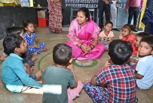 धमतरी जिले के ग्राम तेलिनसत्ती में आंगनबाड़ी केंद्र क्रमांक-2 का दौरा करते हुए श्रीमती राजवाड़े ने बच्चों को दी जा रही सुविधाओं का जायजा लिया। उन्होंने बच्चों के साथ फर्श पर बैठकर खेल-खेल में परिचय किया, उनके नाम पूछे और चॉकलेट बांटी। बच्चों से नाश्ता व भोजन के बारे में जानकारी लेते हुए उन्होंने आंगनबाड़ी कार्यकर्ताओं को निर्धारित समय पर भोजन और नाश्ता देने के निर्देश दिए। पोषक आहार की गुणवत्ता सुनिश्चित करने, गर्मी को देखते हुए पीने का पानी और ओआरएस की व्यवस्था करने, और केंद्रों को सुबह 7 से 11 बजे तक खोलने के निर्देश भी दिए। मंत्री ने बच्चों को खेल-खेल में व्यवहारिक ज्ञान देने, पढ़ाई पर ध्यान देने और साफ-सफाई का महत्व सिखाने पर जोर दिया। उन्होंने कहा कि आंगनबाड़ी केंद्रों को बच्चों के लिए सुरक्षित, सुविधायुक्त और अनुकूल बनाया जाए।