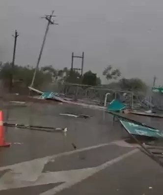 रायपुर/बिलासपुर। सिमगा रोड में टोल नाके का शेड आंधी तूफान के चलते गिर गया है, इस हादसे के कारण आवागमन प्रभावित हो गया है। बता दें कि गर्मी के सीजन में मौसम का मिजाज बदला हुआ है। रायपुर में शाम होते ही अचानक तेज धूल भरी आंधी चली। करीब 50-60 किलोमीटर की रफ्तार से हवाएं चलने से कई जगह पेड़ और होर्डिंग्स गिरे हैं।