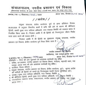 नगरीय प्रशासन विभाग की बड़ी कार्रवाई, CMO को किया निलंबित