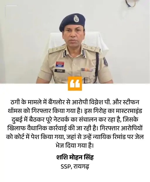 पूछताछ में पता चला कि ठगी का नेटवर्क कर्नाटक सहित दुबई से भी संचालित हो रहा था। गिरोह डिजिटल अरेस्ट, आधार/सिम लिंकिंग, क्रिप्टो निवेश और फर्जी लोन ऐप्स के जरिए ठगी करता था। मामला पुसौर थाना क्षेत्र का है।